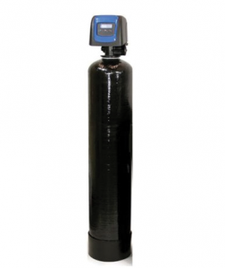 Un filtre à charbon Pentair entièrement automatique pouvant être lavé à contre-courant, muni d’une vanne de commande de série 5800 installée sur un réservoir en fibre de verre contenant du charbon activé